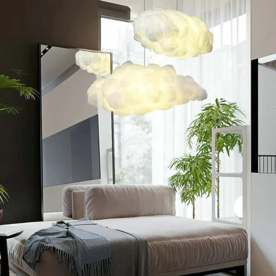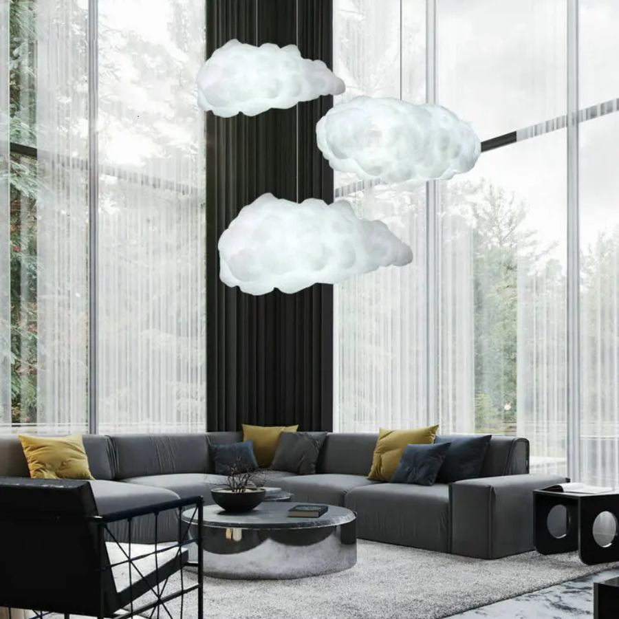 Faites de votre salon un lieu onirique et contemporain grâce à cette lampe Nuvola, une suspension luminaire nuage originale et raffinée. Grâce à sa conception qui s’inspire des formes légères et éthérées des nuages, elle diffuse une lumière douce et homogène, créant ainsi une atmosphère calme et chaleureuse. Ce plafonnier au style minimaliste et artistique est idéal pour les salons contemporains ou les chambres, ce qui en fait un point focal qui sublime votre décoration intérieure.