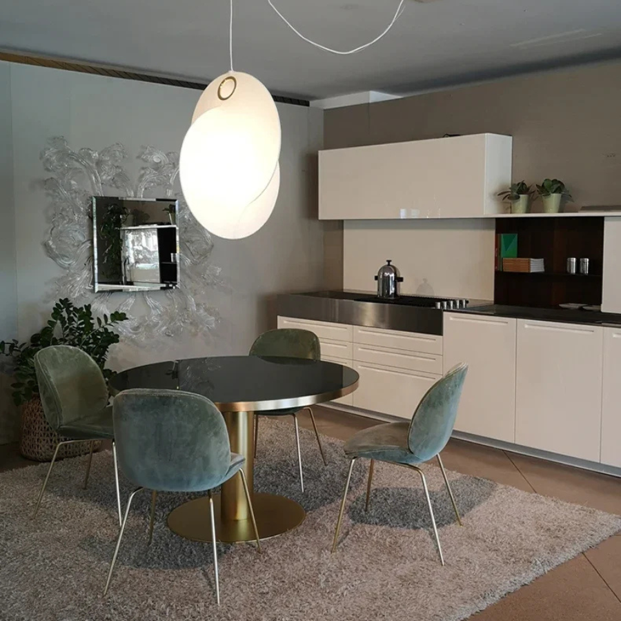 Une suspension style Overlap apporte une touche de tranquillité et d’élégance à votre intérieur, un plafonnier en tissu qui représente l’esthétique minimaliste et organique du style wabi-sabi. Il offre une lumière douce et apaisante grâce à ses formes superposées et à son tissu délicat, ce qui lui confère une ambiance chaleureuse dans un salon, une chambre ou une salle à manger. Ce luminaire original combine un design contemporain et naturel afin de mettre en valeur n’importe quel espace avec élégance.
